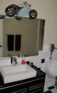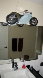 Biker Bathroom Featuring Elk Motorcycle Pendant