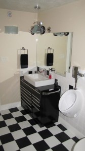 Biker Bathroom Featuring Elk Motorcycle Pendant