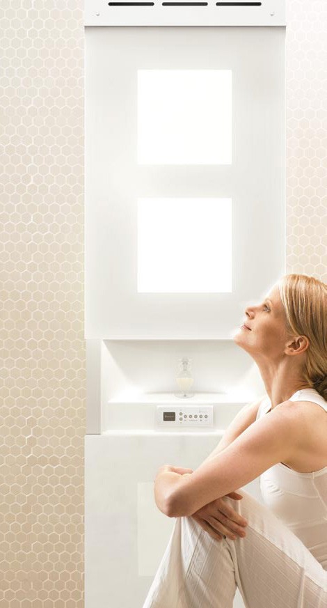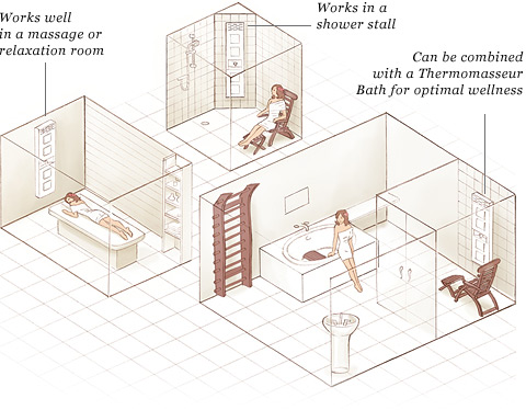 What could be better than having your own spa in your own home? The Vedana spa shower system from Bain Ultra makes it possible to enjoy five different therapies! Promoting sensations of mental and physical well-being, the Vedana offers terrific therapeutic benefits, with proven technologies like chromatherapy, sound and light therapy, aromatherapy, as well as BainUltra’s high performance Thermotherapy systems! Hydro-thermo massage expertise combined with the Vedana system make for an experience like no other. You can experiment with the therapies, until you find the perfect combinations to sooth, refresh, relax or invigorate at any time. Coordinate the spa shower with your own style by choosing one of four different colors: White, Biscuit, Mexican Sand or Sandbar.