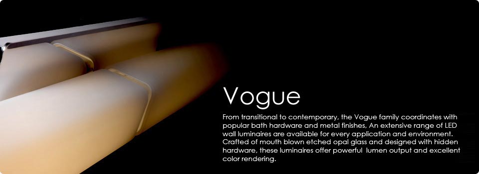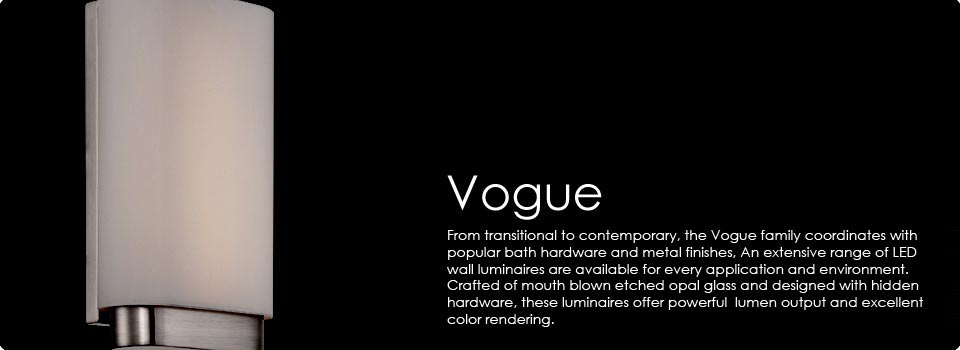 MODERN FORMS demonstrates a range of designs and technology on the cutting edge of fine bath lighting. The edge lit Neo adapts the latest technology from the television and display industry to create phenomenal light output from a half-inch deep luminaire. While stunning Piastra glass dates back to the 13th century in the Vetri family sparkles under spectacular LED illumination. The comprehensive Vogue collection of sconces and bath brackets is paired with stylish flush mounts with double the illumination of anything else in the market, and the commanding Jedi luminaires are engineered with high tech, single spot multi chip LED sources that project narrow beams of light for ambient illumination and wall grazing for upscale indoor and outdoor applications.