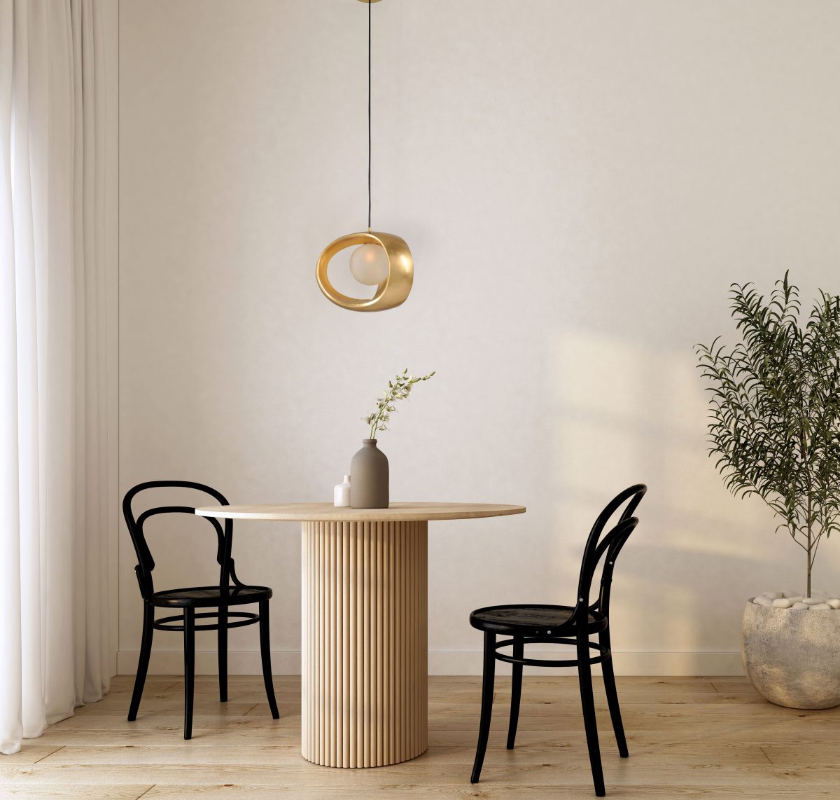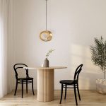home interior dining room with wood chair and wood table,vase wi